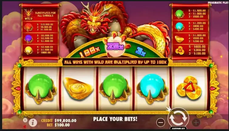 游戏中,巨龙会随机现身,喷吐宝珠,触发即时彩金或高额倍率加成。 -